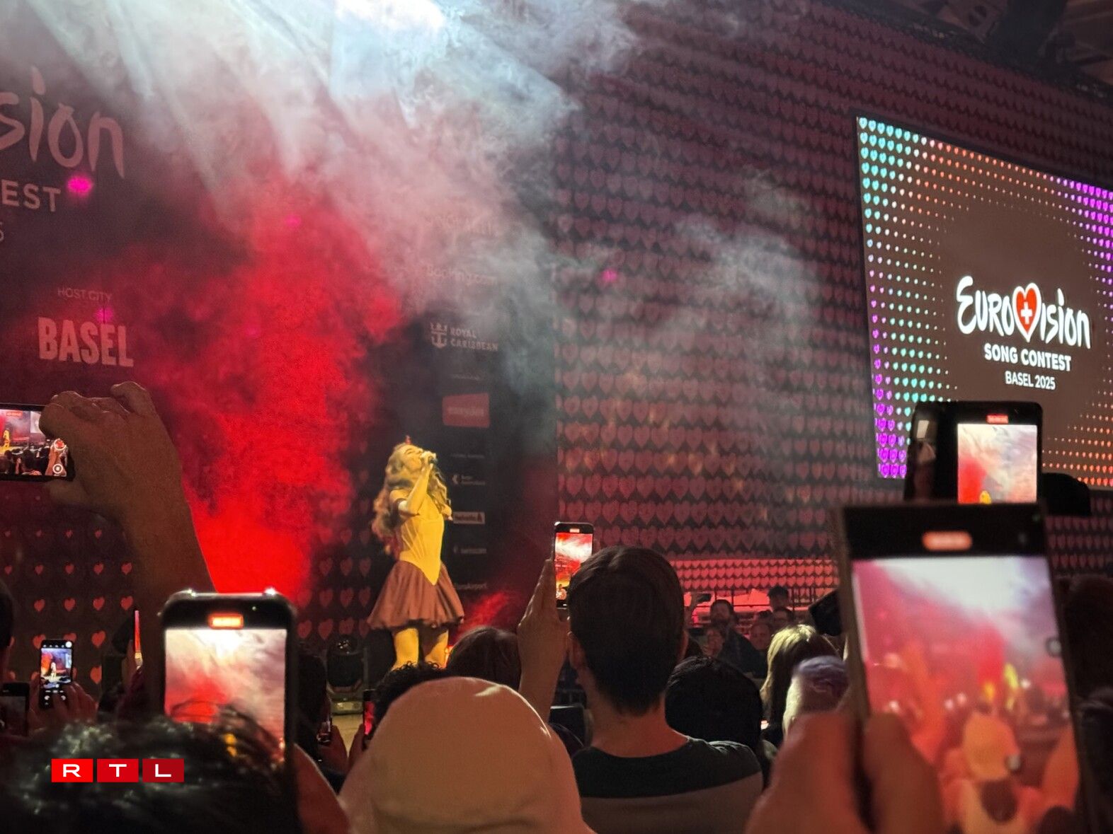 Dräi Minutten huet de ganzen Optrëtt just gedauert, ma dat dann awer an enger voller Hal. Wéi sech dat fir en ESC gehéiert, gëtt et zu Basel eng Plaz, wou Concerten a Public Viewingen organiséiert ginn an dat ass um Baseler Messegelände.